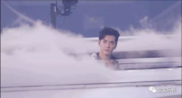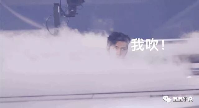 在干冰的烟雾中,能看到吴亦凡露出个脑袋,还有一双搞怪的眼睛。