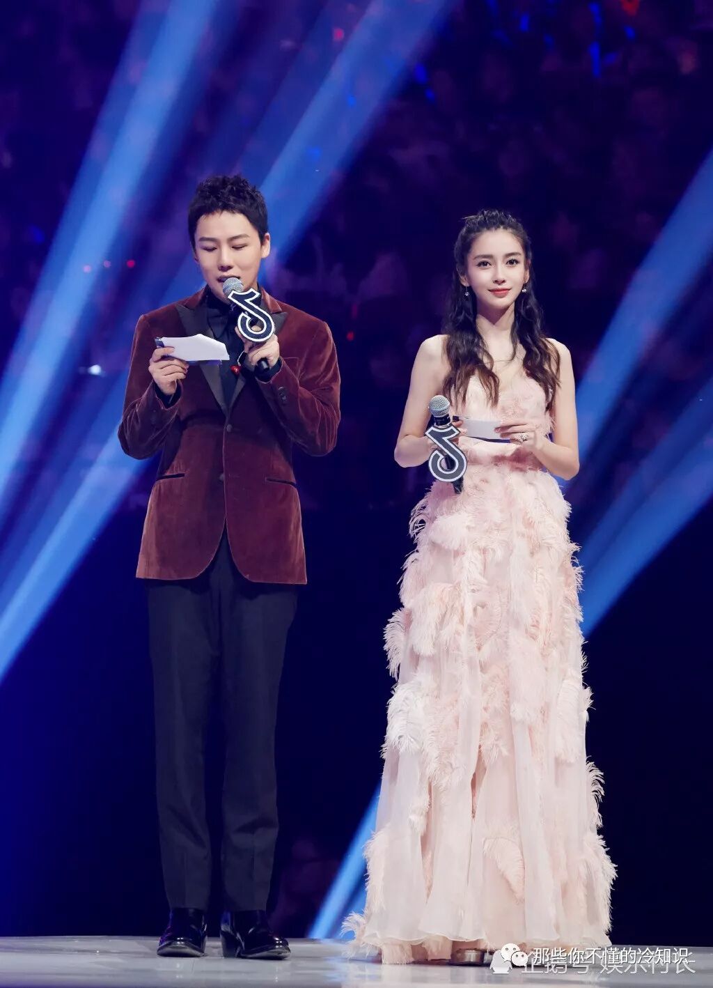 后半场时,女主持人们纷纷换装,此时baby则换上一身粉色的羽毛长裙,走的则是粉嫩路线。关晓彤则是换上了大红裙,走的是成熟路线。而欧阳娜娜则是换上了男款西装,走的是英姿飒爽的中性路线。