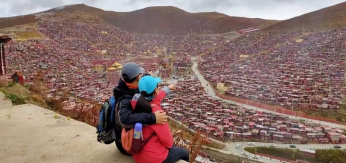 初尝高反滋味的我,多喝水慢动作,努力调整节拍,开始了心心念念的色达之旅 。不多时,大面积的黄红房子映入眼帘。恰逢早课,修行者从四面八方而来集聚大殿,纷纷脱鞋而入,不敢扰乱。
