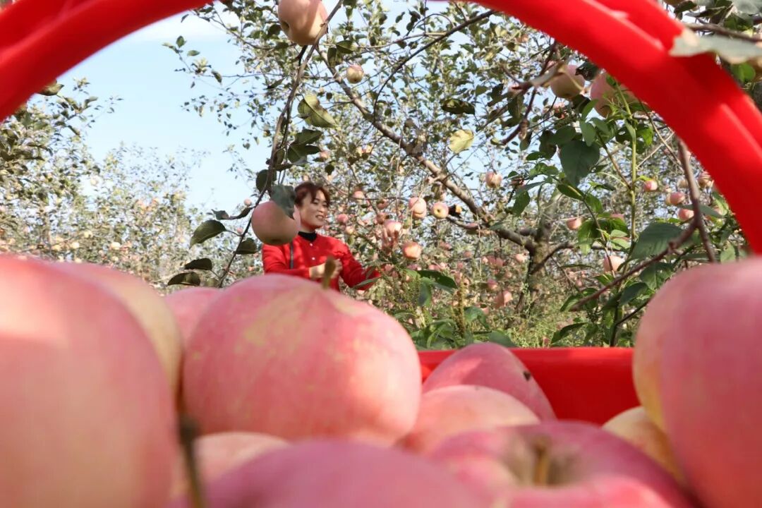 满眼翠绿中一个个红彤彤的苹果压弯了枝条格外吸引眼球空气中弥漫着香甜的味道融媒体记者:梁淋红 通讯员:高 振 宋彦伟