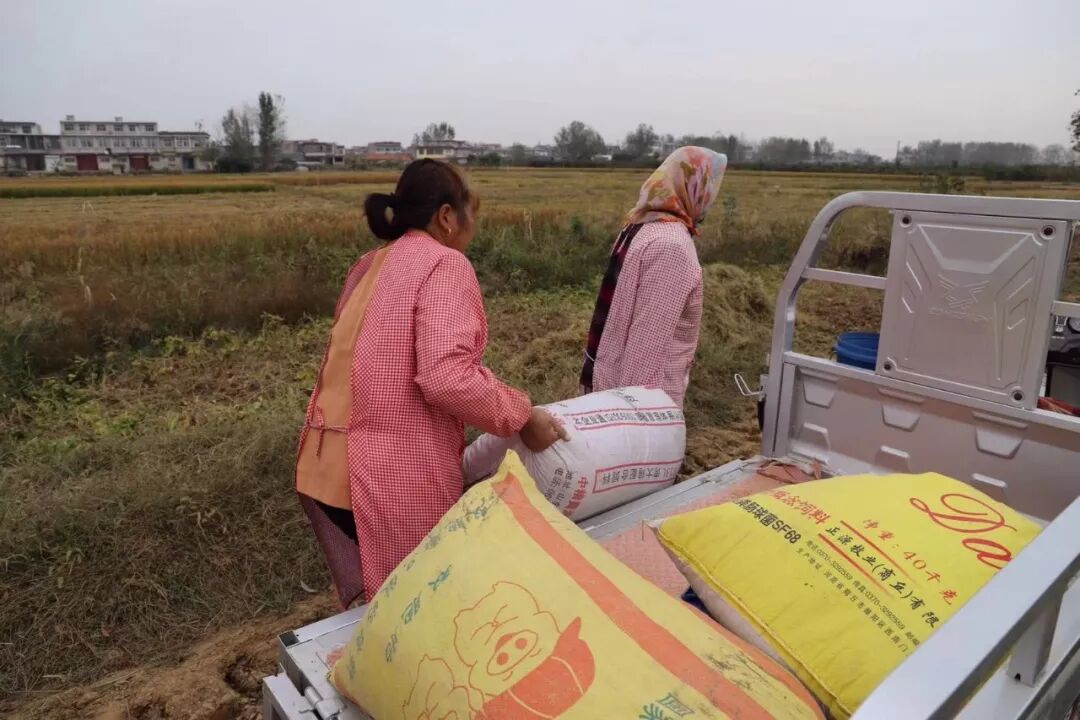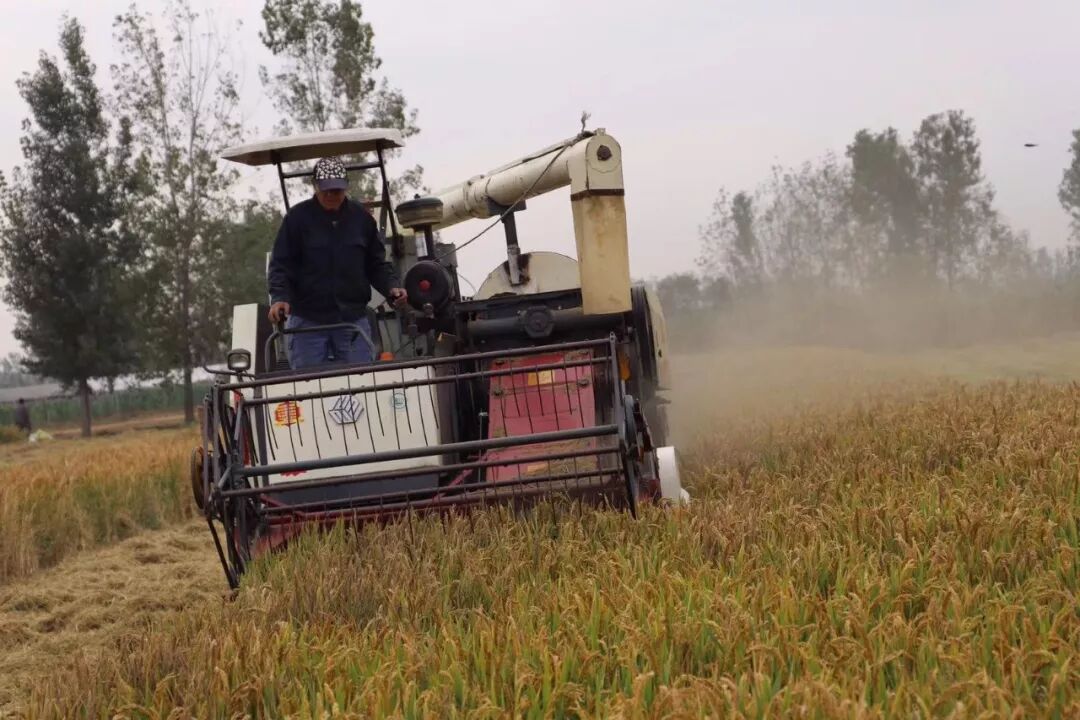 ▼图为该镇贾庄村农户傅济侠在收割水稻、抢种小麦