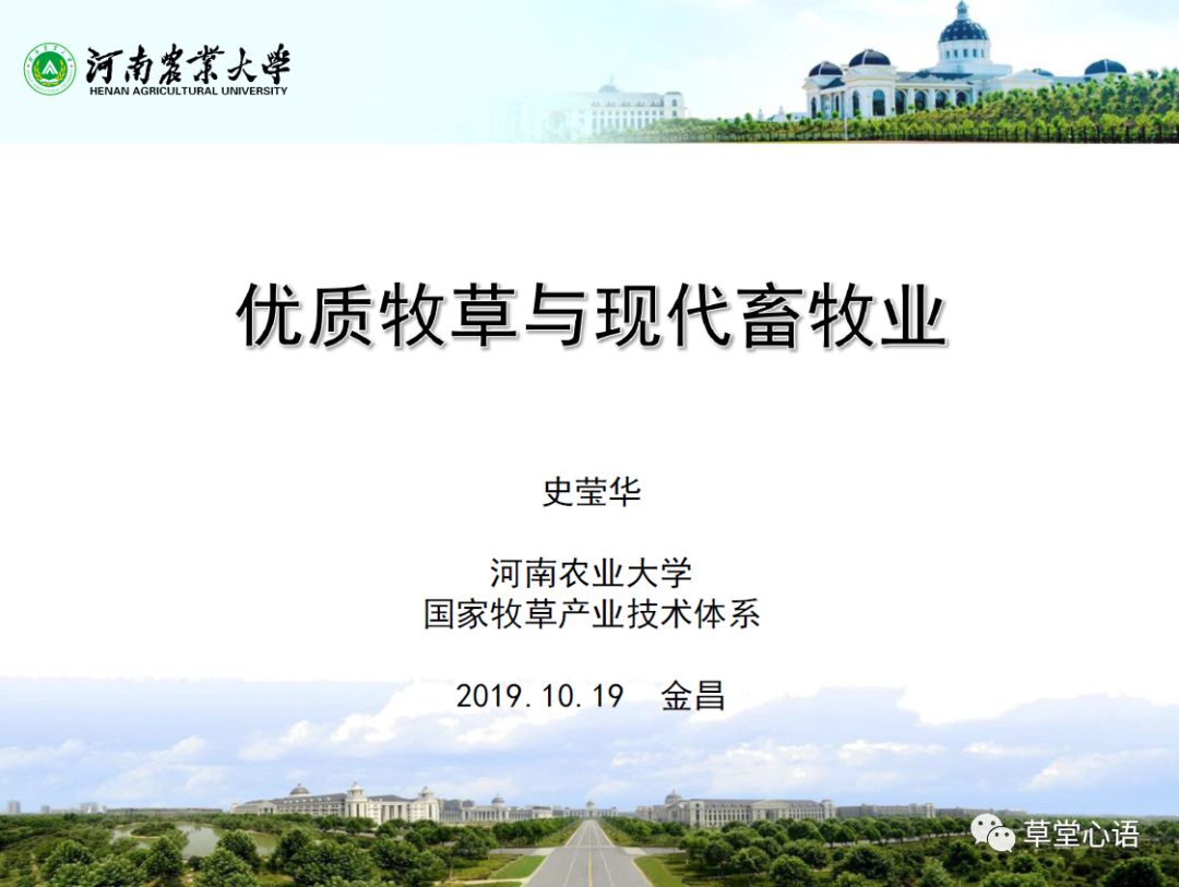 公元2019年10月19日,为深入探讨牧草产业发展难点,促进技术升级,加强沟通交流,不断推进甘肃牧草产业高质量发展积蓄力量,由国家牧草产业技术体系、甘肃省科技厅、甘肃省农业农村厅、金昌市人民政府主办,兰州大学、西北农林科技大学、甘肃农业大学、甘肃省农科院、甘肃省草产业协会支持的“优质牧草产业高质量发展论坛”在“中国镍都-金昌市”隆重举行。