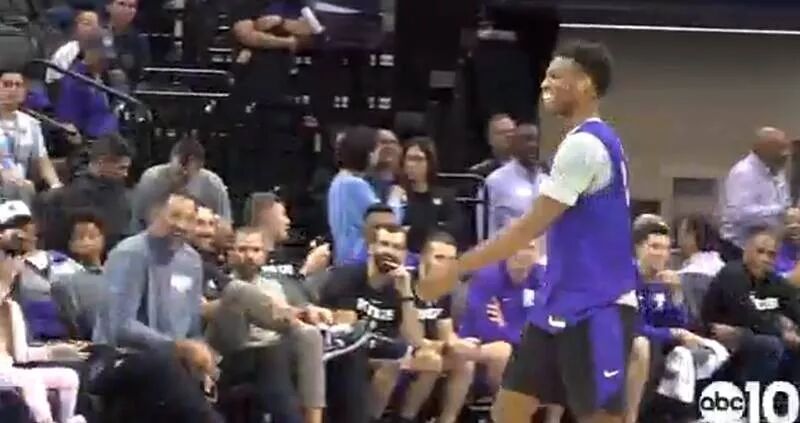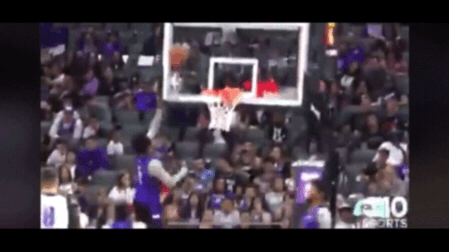 当时福克斯送出打板球,希尔德跟进完成空接扣篮,