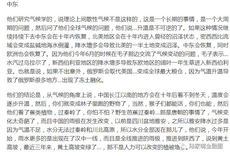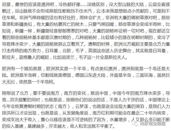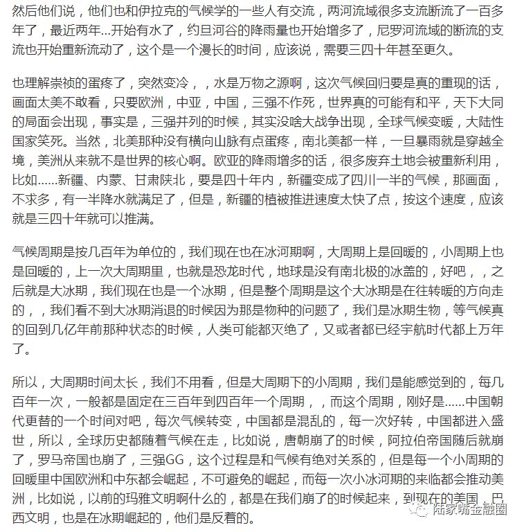 他们也说了一些其他的气候变动,,,,说南极那边的融化不可避免了,因为南极大陆架上今年出现湖泊了,今年夏天,他们得到的南极站和气象卫星的数据是说,南极出现了上万个冰湖,中国居然还有一大堆SB在担忧气候变暖,脑子进水了,我们可是大陆国家啊,我们算一个趋势,西方文明的崛起刚好是四百多年对吧,从他们开始崛起算,他们大航海开始是在明朝开始的,是的,借的全球气侯变暖开始行动,在两百年前,美国开始建立。也就是说,气候变暖很有可能会终结掉他们的好日子,而欧亚大陆会再一次回到历史应该有的地位,他们就是全球气候变冷后崛起的,小冰期后崛起的,,而现在,一切都回来了。
