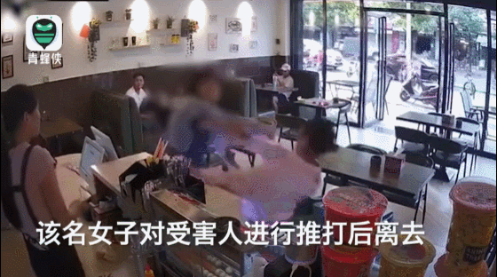 被打女孩起身结账,