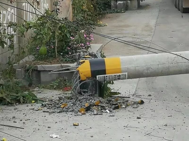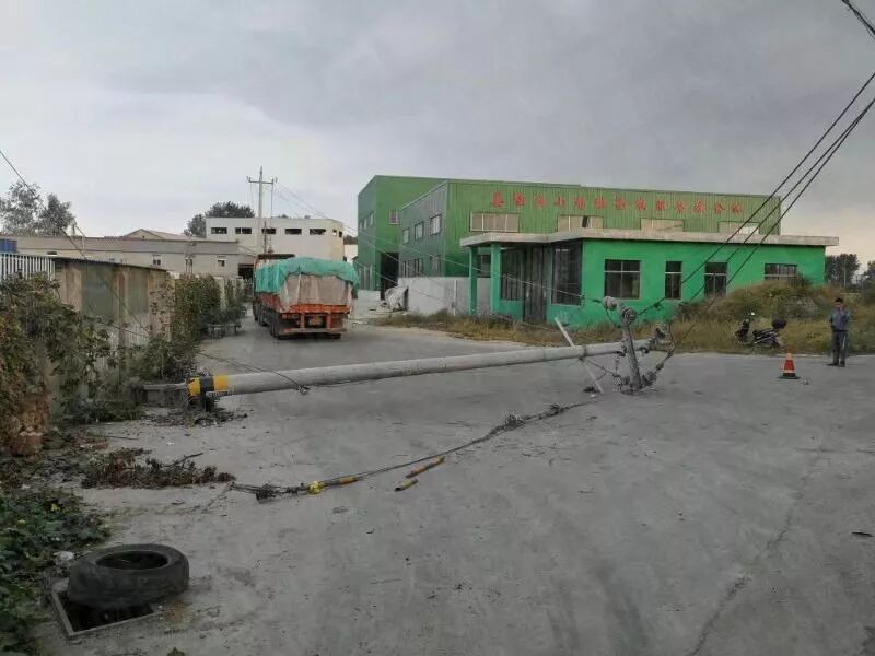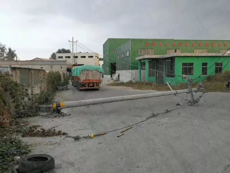 目击者王先生告诉小编,电线杆原来是竖在路边靠院墙一侧,肇事的大货车是辆山东牌照的车子,到事发地装运粮食,可能因为是第一次来,对地形不熟悉,倒车时疏忽大意撞到了电灯杆。