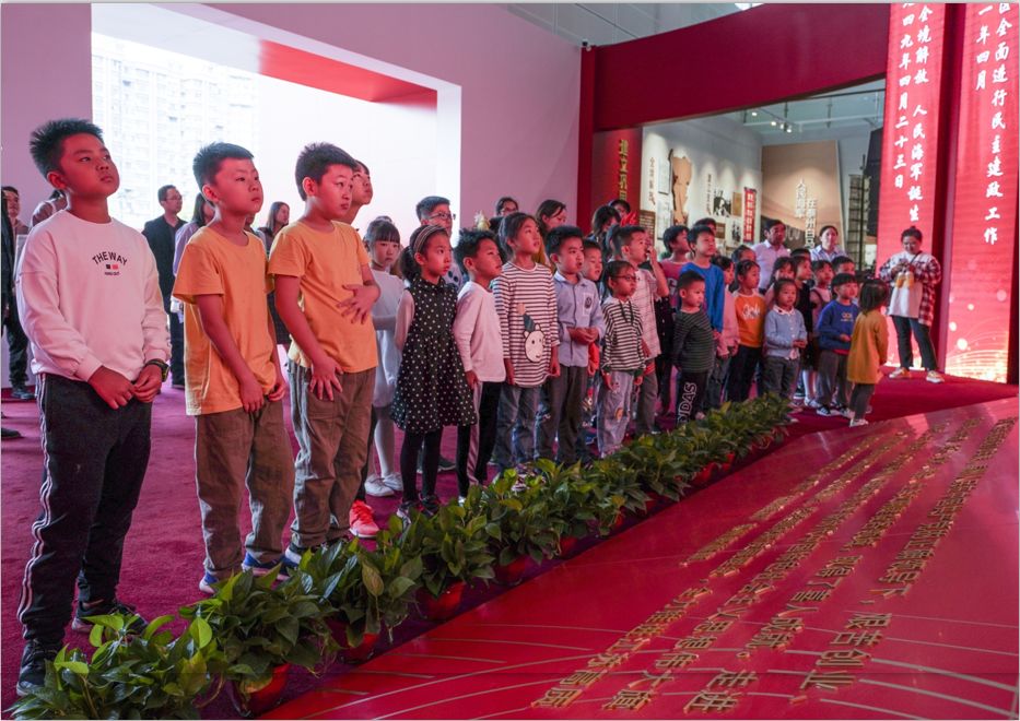 蓝海小主持人参观泰州市庆祝新中国成立70周年成就展