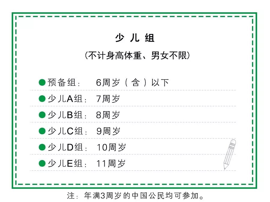 注:6周岁(含以下)预备组不设冠军、亚军、季军奖项;