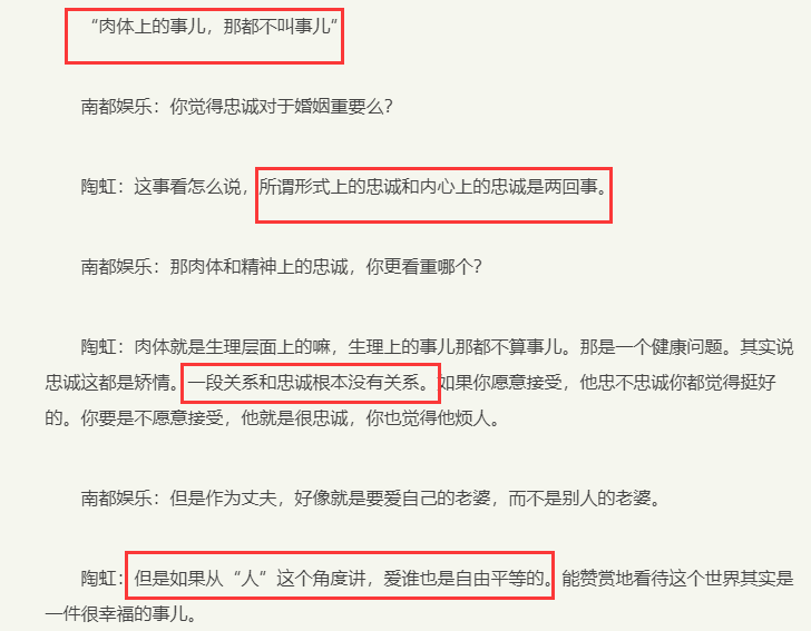 简简单单的一句话已经道出了陶虹对于“肉体出轨”的态度。