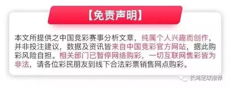 ??点击上方长鸿足球推荐订阅,免费获取当日竞彩推荐,谢谢阅读、订阅、转发、关注。