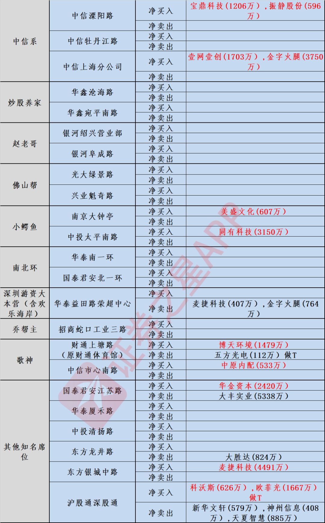 机构明显净卖出:星辉娱乐(5103万)、壹网壹创(3977万)、神州信息(1809万)