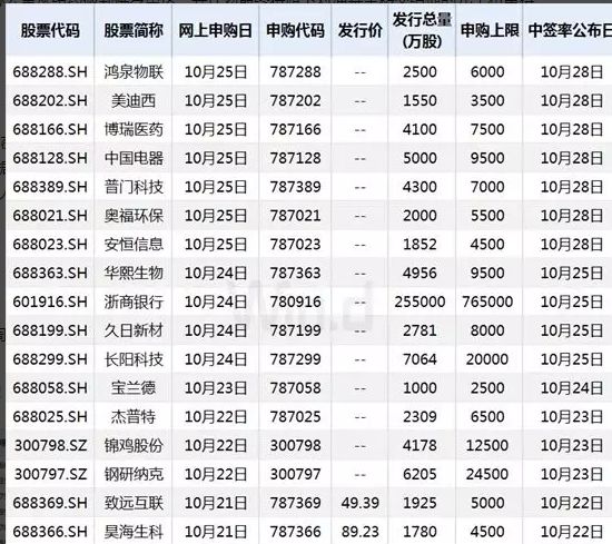 下周A股市场将迎来17只可申购个股。包括1只主板个股、2只创业板个股,以及14只科创板个股。。
