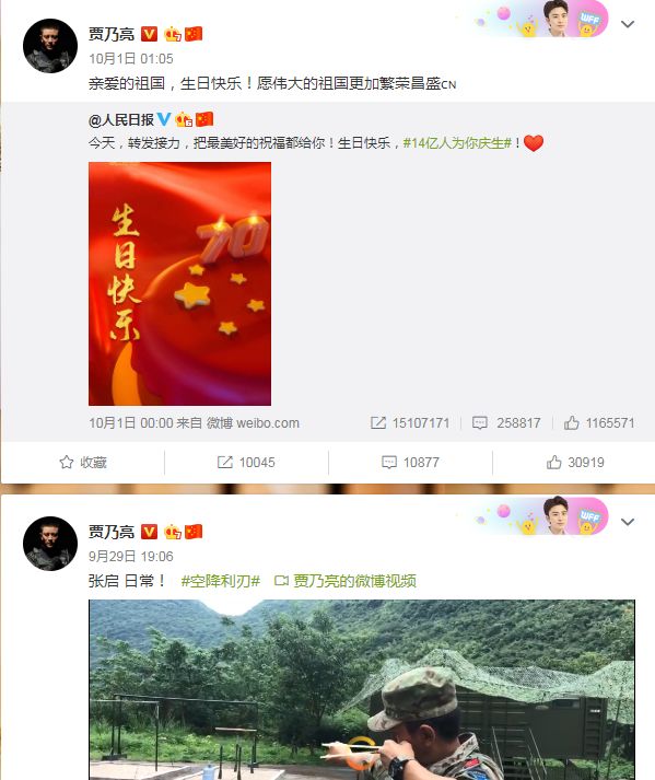 我们来看看贾乃亮的微博那天都在干嘛,贾乃亮在30号这天并没有选择送祝福,反而国庆节和9月29号发了微博,唯独9月30号这天间隔了出来,虽然只是一个很小的细节,这其中也隐藏了许多猫腻。