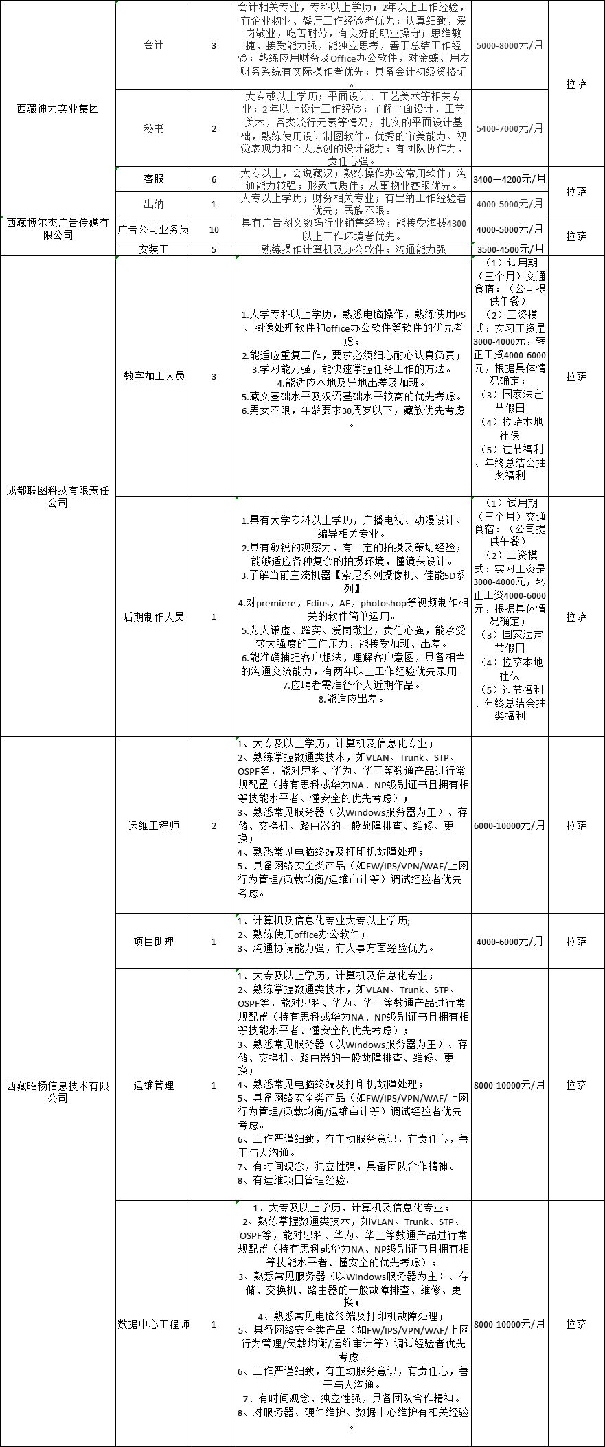 以下为部分岗位表,其中大部分均是我校校企合作单位。其余岗位将在明后天陆续发布,请同学们持续关注。