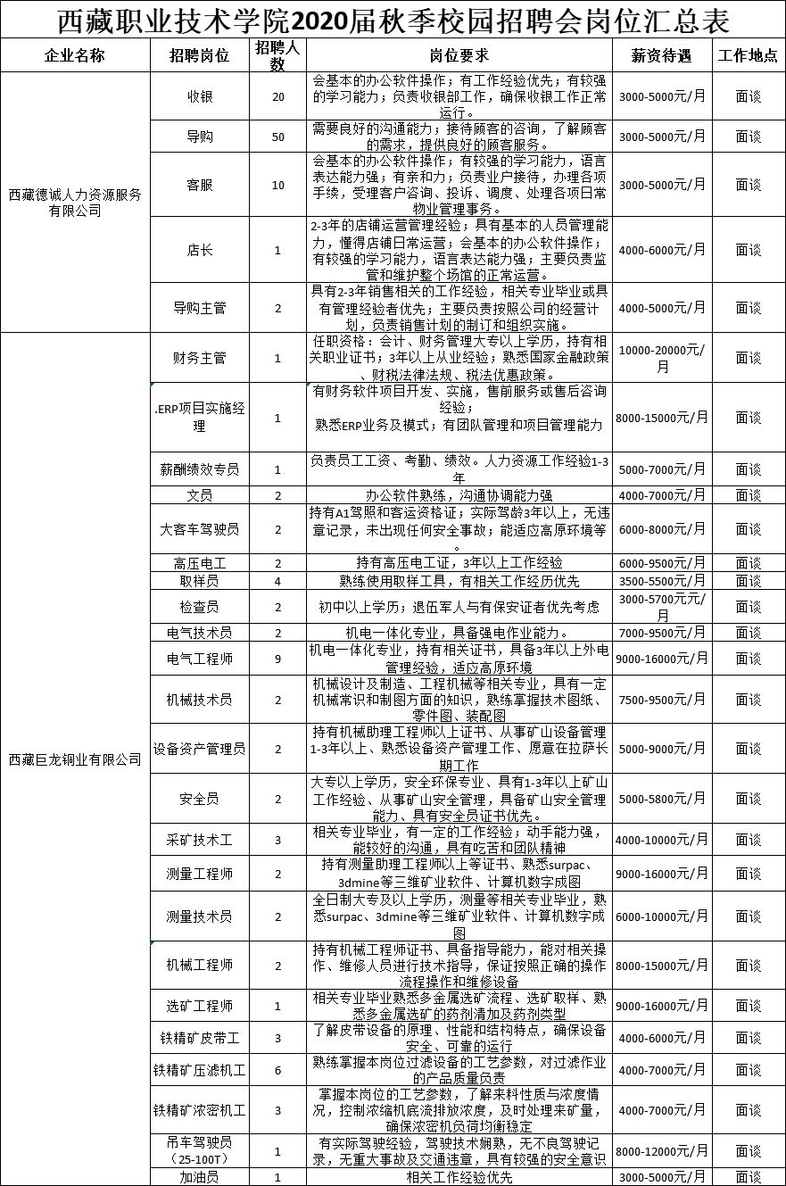 西藏职业技术学院2020届秋季校园招聘会来了!