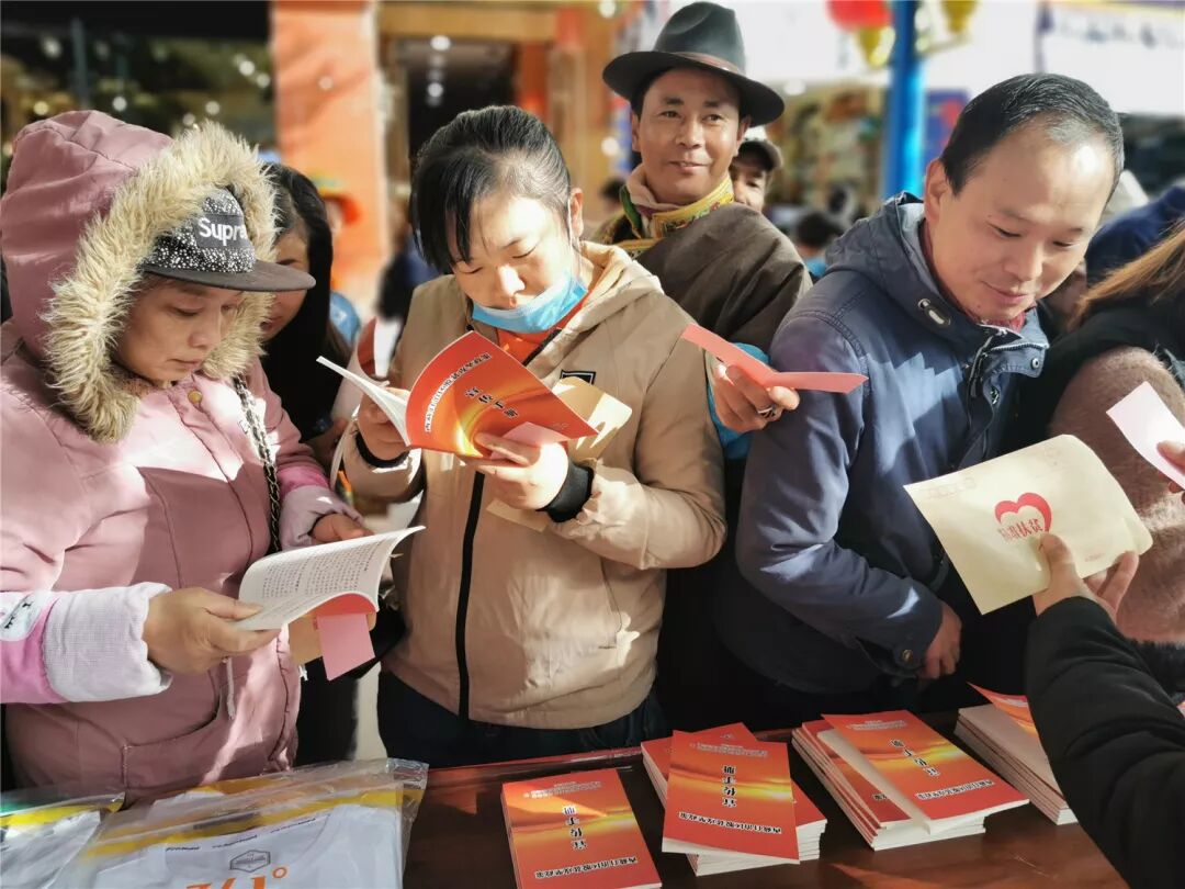 自治区扶贫办的宣传展台前,被过往的市民围得水泄不通,大家都在翻阅脱贫攻坚政策宣传手册参与有奖知识答题。市民格桑德吉回答了现场工作人员的提问,高兴地拿到了奖品。在接受记者采访时说:“我的问题是脱贫攻坚的三大主战场是什么?我在宣传册上找到的答案,是日喀则、那曲和昌都。”