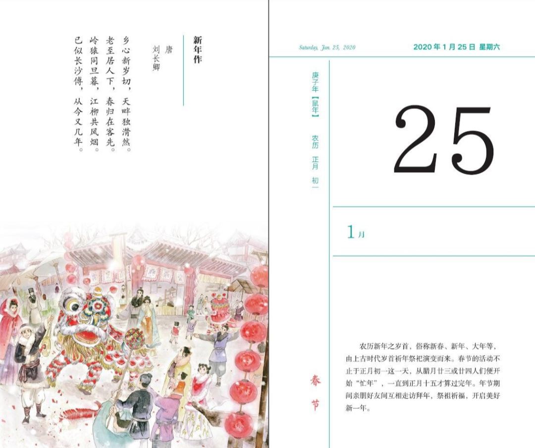 在传统节日、二十四节气这些特殊的日子里,不仅选诗与之相对应,今年开始,还在书中新增中国传统节日与二十四节气小知识。