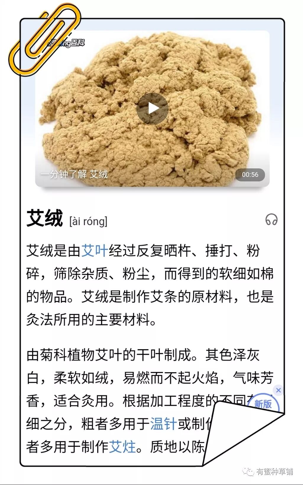 选用野生艾草制成艾绒