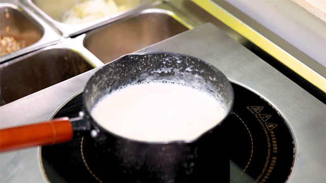 火一开一关之间,大豆的香气随着氤氲的热气满溢。红枣、银耳、西米、芋圆…十几种不同风味和口感的配料在炖煮间融入豆浆,不抢风味,反而增添几分浓稠和香甜。