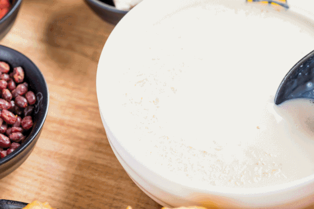 用筷子或勺子挑起豆浆表面凝起的奶黄色豆皮是每个爱喝豆浆的人儿时的执念,也是检验豆浆品质好坏的标准,只有现磨豆浆才有这种效果噢~