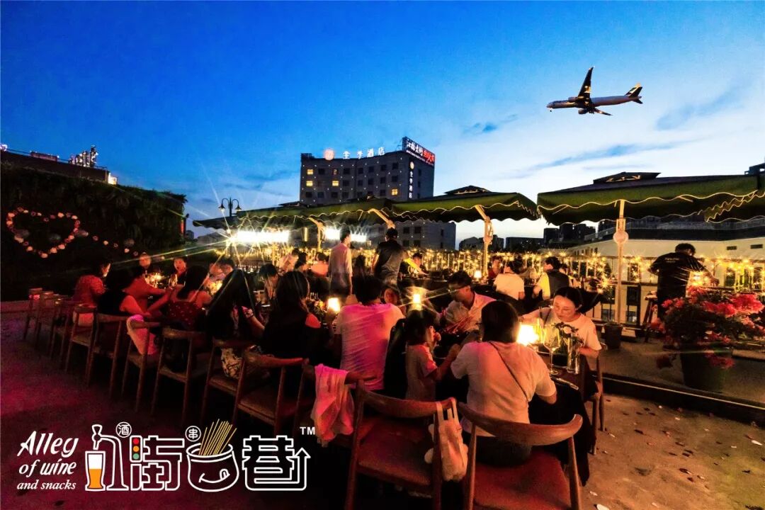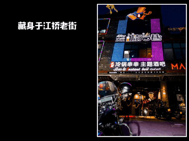 周围人流来往,车水马龙的喧嚣,为酒街串巷的气氛增添不少。美轮美奂的灯光设计、现代又略复古的工业风……让酒街串巷成为了许多不归人的慰藉。