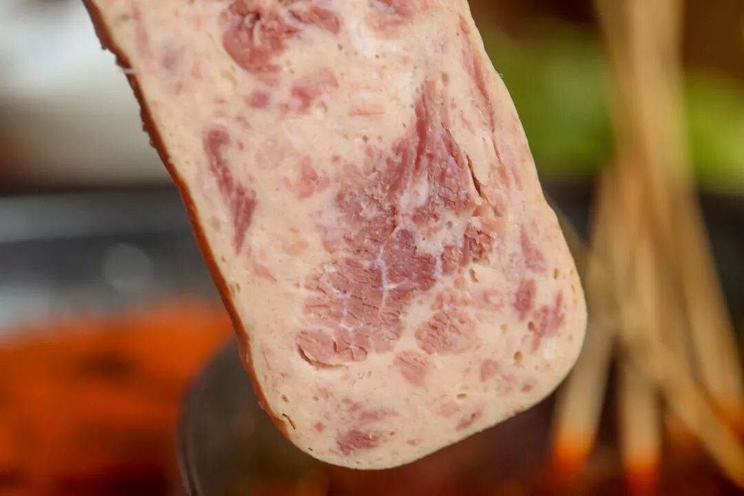 这个午餐肉可不是在哪里都能吃到的哦!看看这漂亮的纹路,还有高达90%的含肉量,这午餐肉太扎实了!