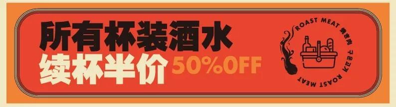 在烎行烤肉,所有杯装酒水续杯都是半价,真的很划算了!