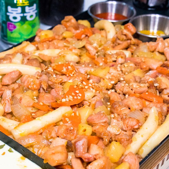 包含:酱鸡(600g);芝士奶酪1份;沙拉1份手抓饭团1份;韩国地域炸鸡翅2对;美式炸薯角;