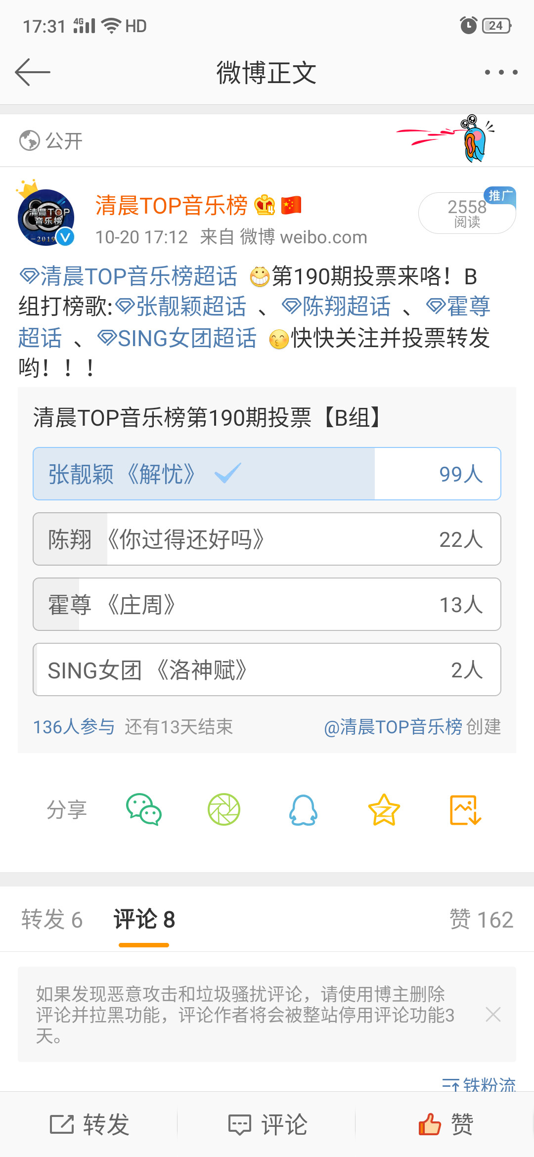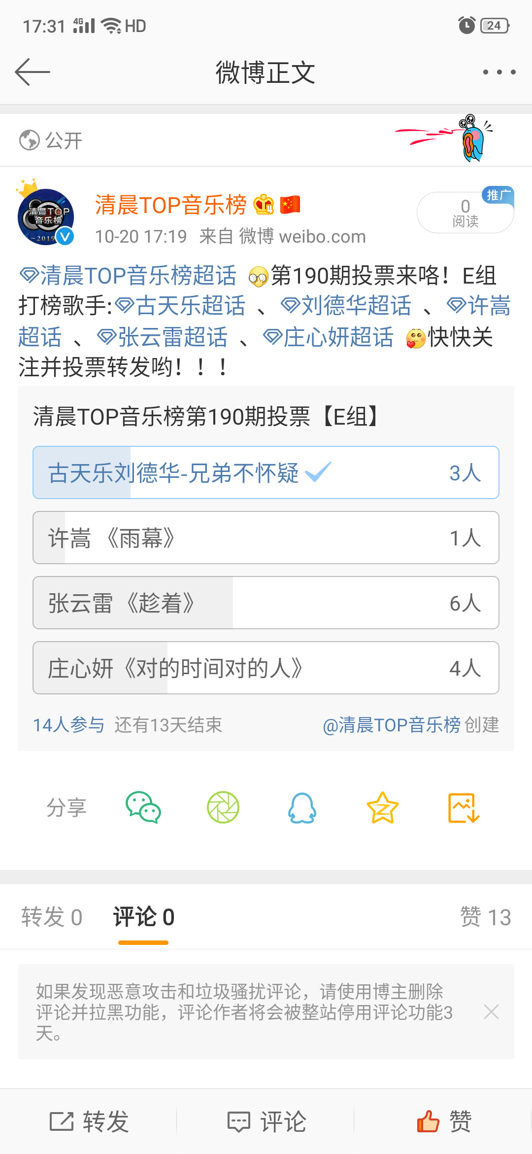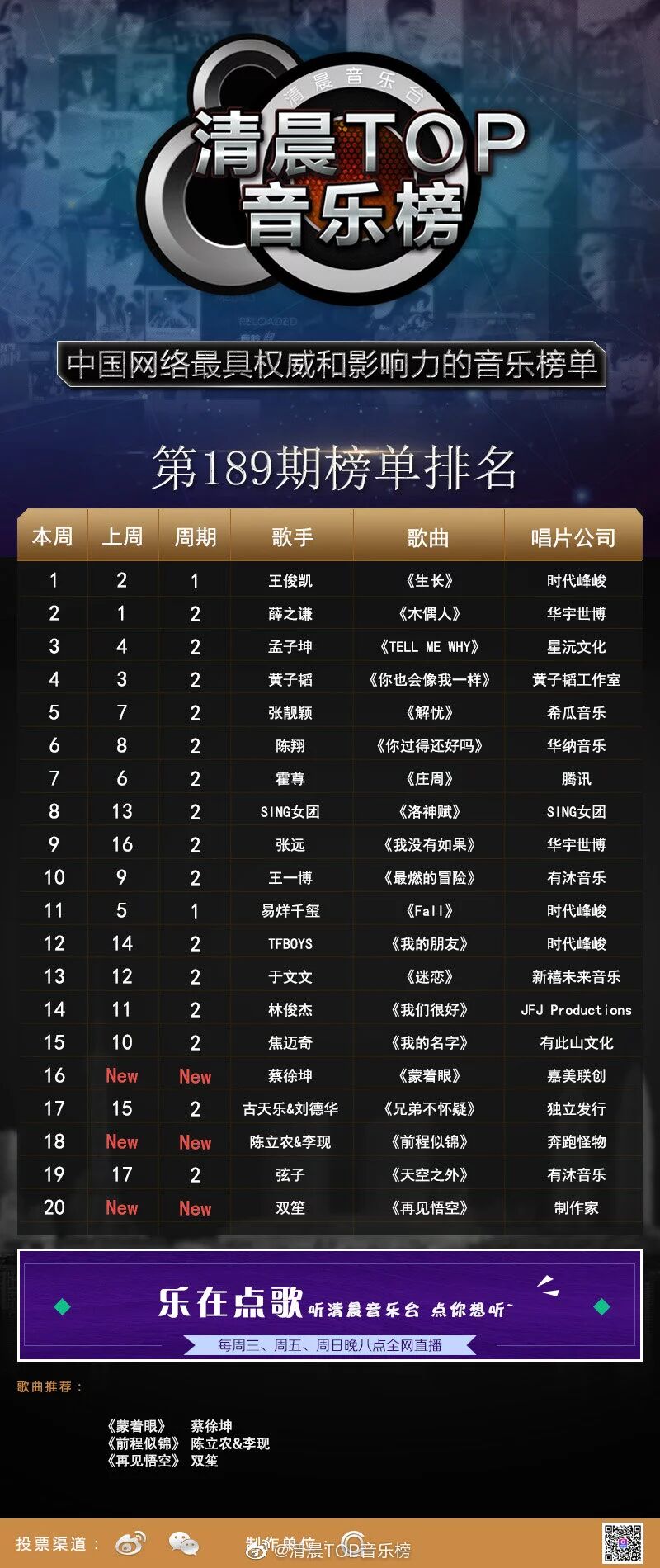 清晨TOP音乐榜第190期投票已开启!新浪微博搜索关注“清晨TOP音乐榜”即可投票!【附上189期排名情况】