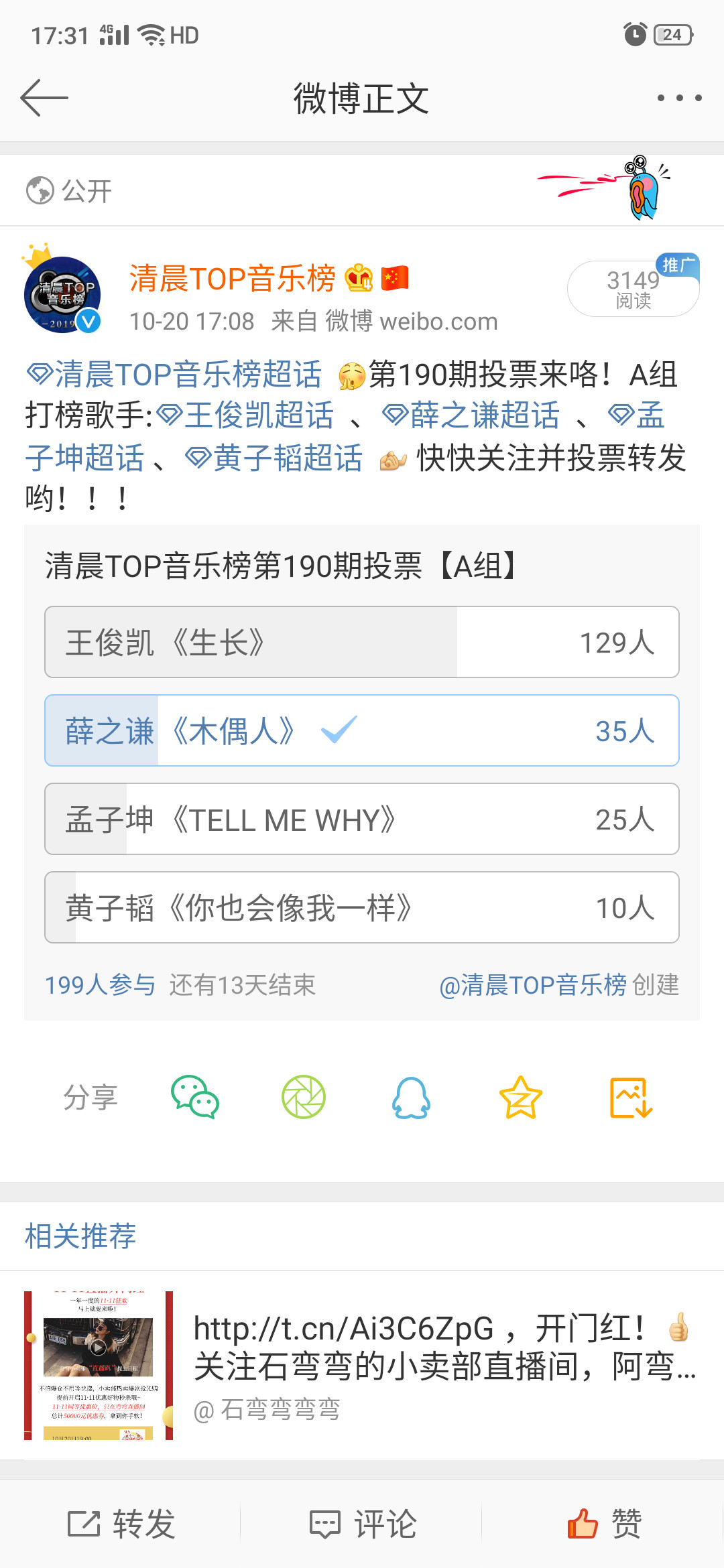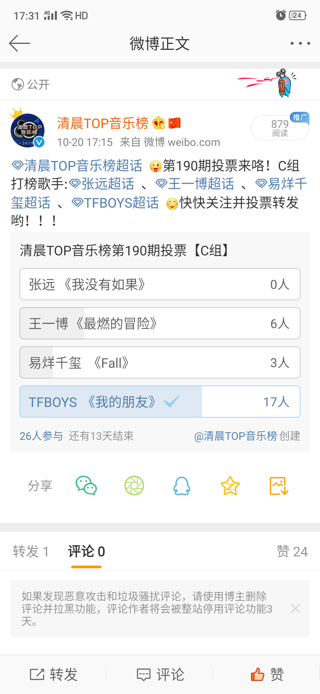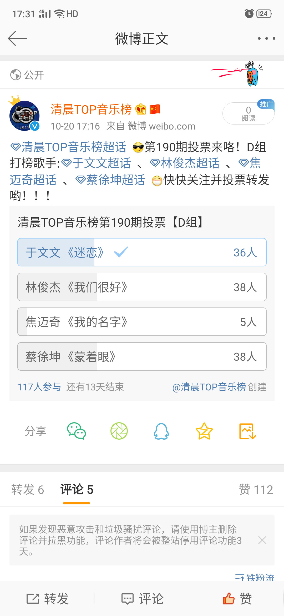 清晨TOP音乐榜第190期投票已开启!新浪微博搜索关注“清晨TOP音乐榜”即可投票!【附上189期排名情况】