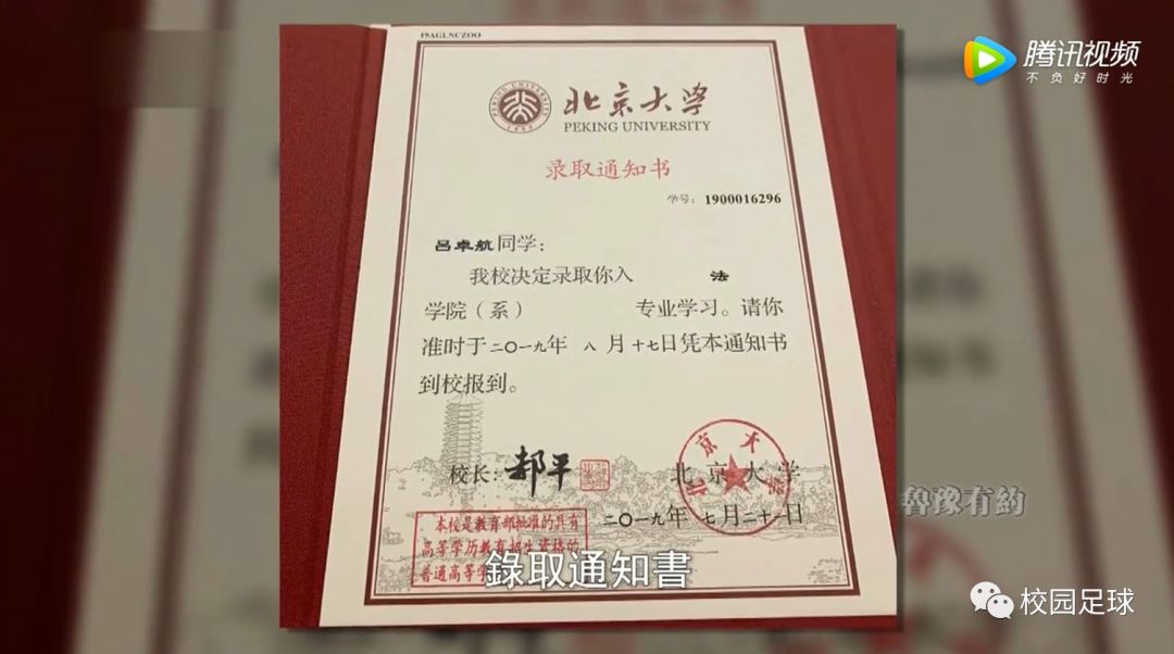 现如今的大学校园里有许多擅长踢足球的非体育专业学生,他们没有成为职业球员,但足球却已经变成了一种生活方式将陪伴他们一生。今年刚刚考进北大的吕卓航就是这样,他以第一名的成绩通过了北京大学高水平运动员专项测试,并在高考中考出了超过河南省二本线的分数。顺利拿到北大法学院的录取通知书。
