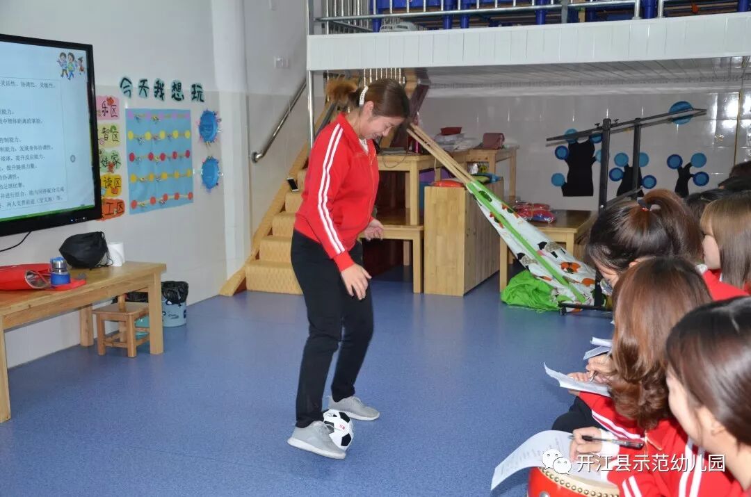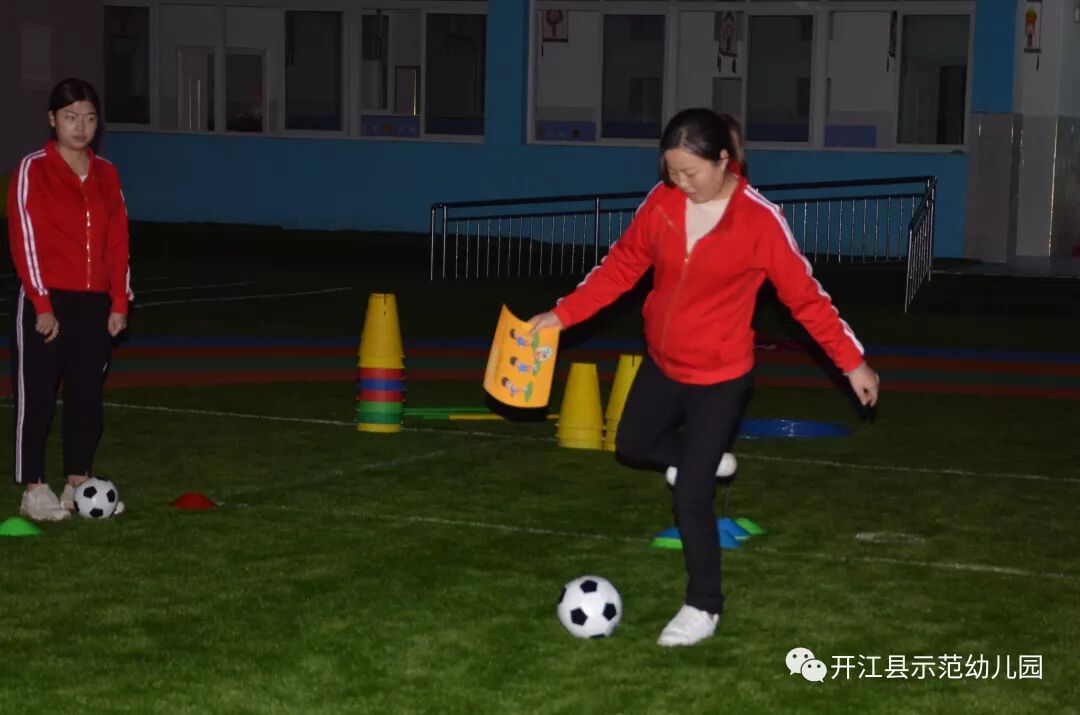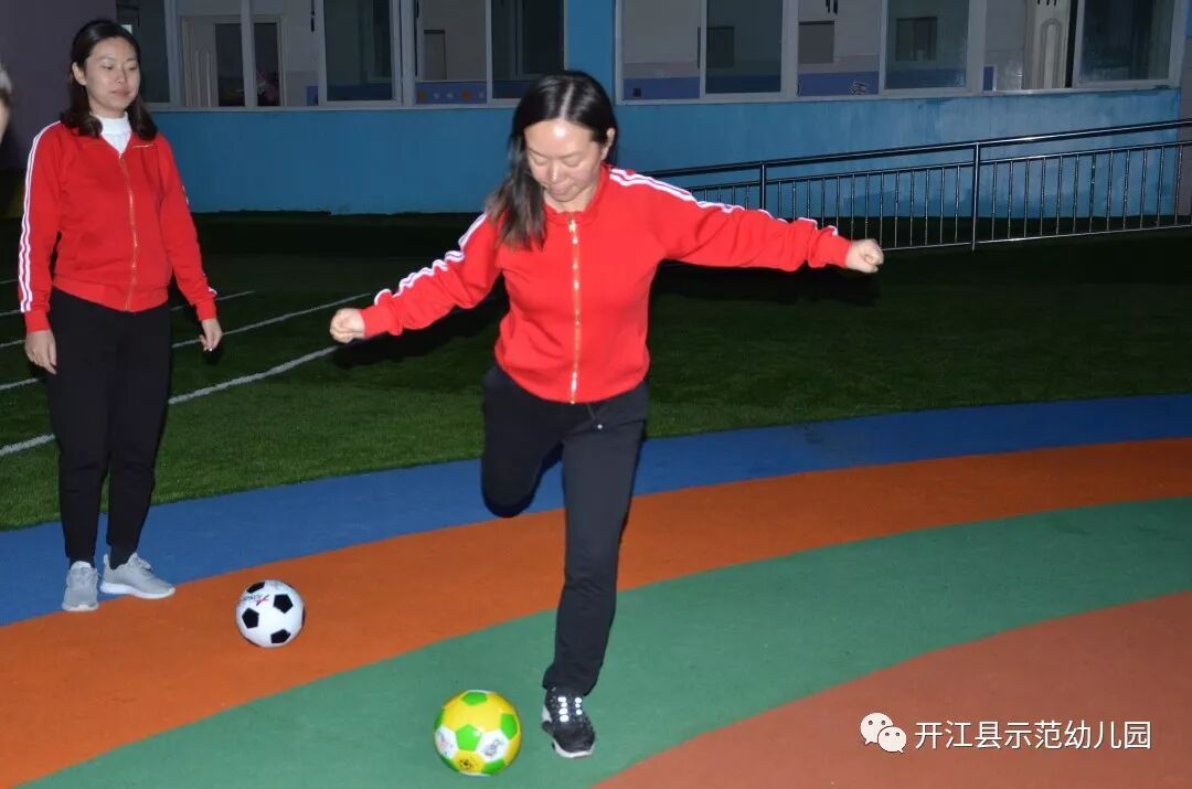 翁老师组织老师们参与到体育游戏中,把传、停、运、拉、颠、射球等一些基本动作各个突破,让老师们从体验中学习,寓教于乐,真正体现了游戏的娱乐性、运动性和教育性功能。