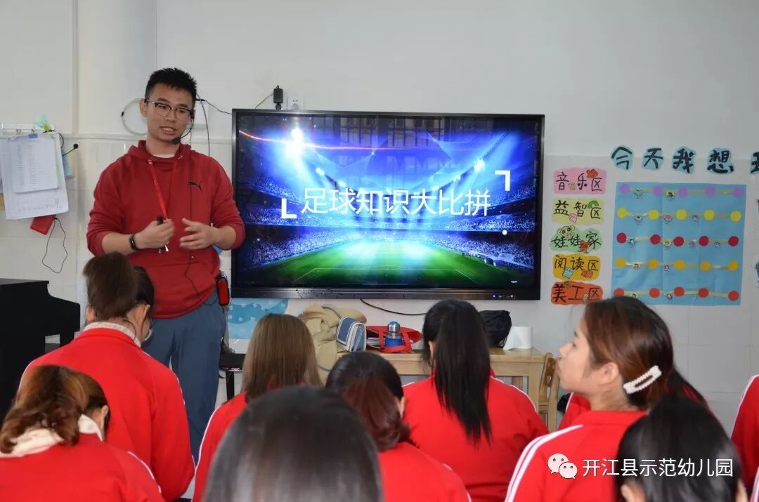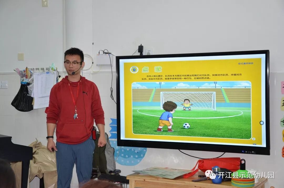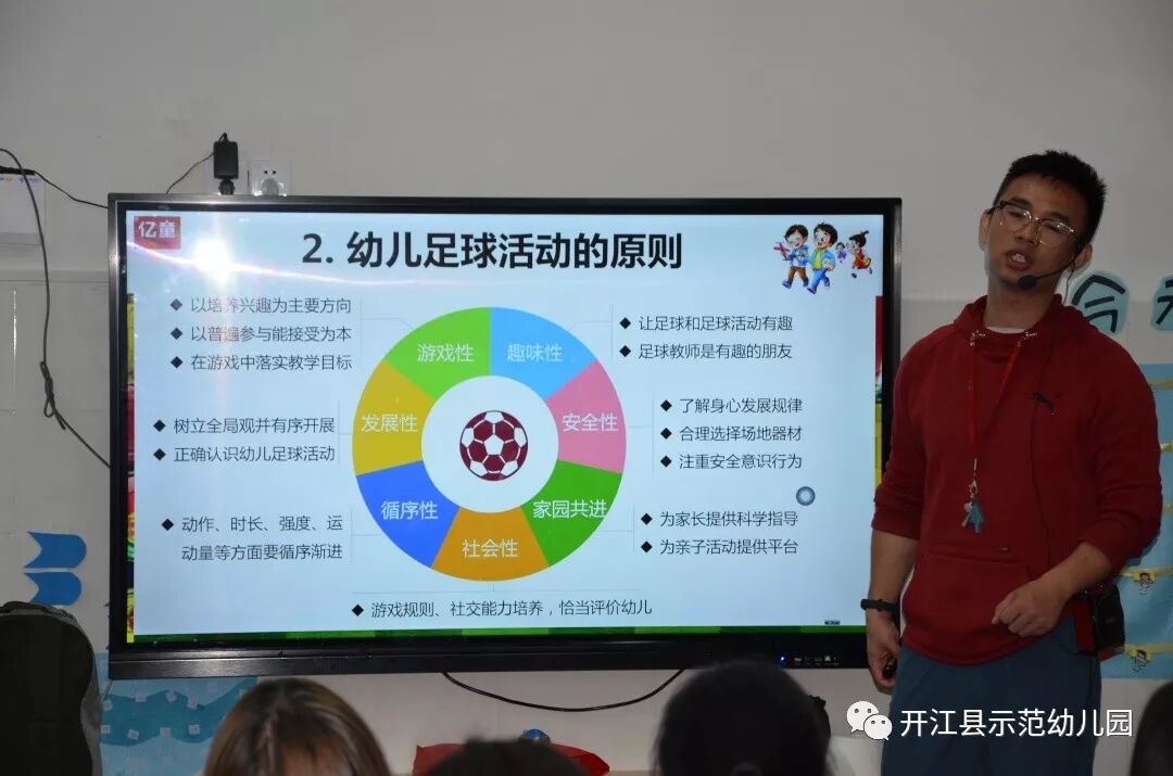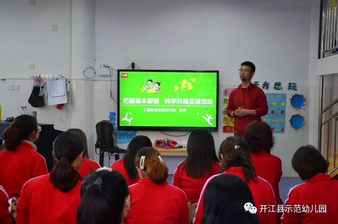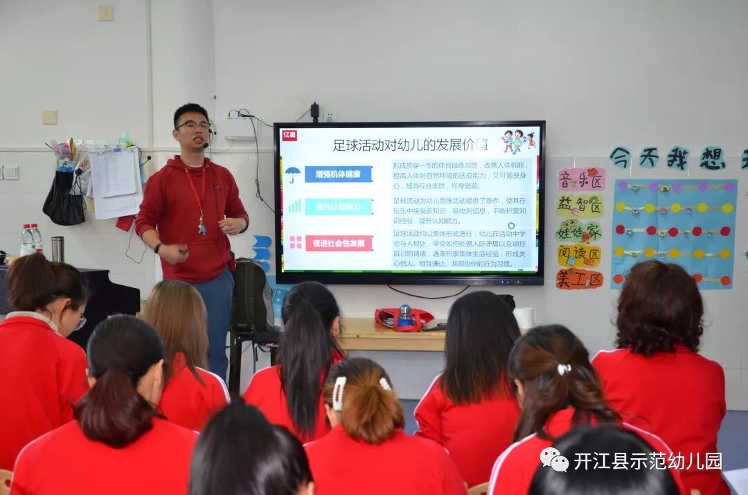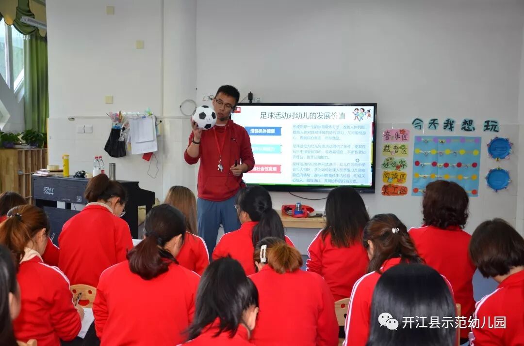 我园积极响应教育部“踢足球要从娃娃抓起、从基层抓起、从基础抓起”的号召。2019年10月17日我园特别邀请了武汉亿童金牌培训师翁鼎老师对教师们进行了一场别开生面的足球知识培训。