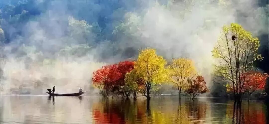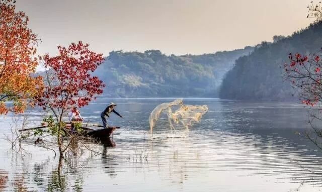 早起去赏拍雾中水上红叶,青山绿水、红叶掩映、薄雾缭绕、渔歌唱晚,快门随便一按便是一副写意风光图,这里可以说是国内拍摄红叶最好的景点之一,景色优美,一见难忘。目前该水域生态环境良好,没有商业开发,自然生态保护得很好,交通便利,适合生态旅游和摄影。秋天罗田温差较大,基本上每天早上都是薄雾缭绕,风光非常写意,适合拍摄。
