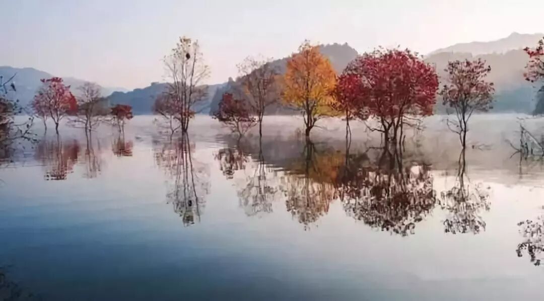 【线路特色】你看过满山遍野的红叶,你看过如梦如幻的水上红叶吗?大别山下的“水上红叶”拍摄点这两年才被发现,是最令人意外的惊艳的风光。这种意外惊喜是来因为一到深秋,罗田农家稻田蓄水、水位抬升,位于田埂上的数十颗乌桕树被水淹没,最后形成这惊艳的“水上红叶”。