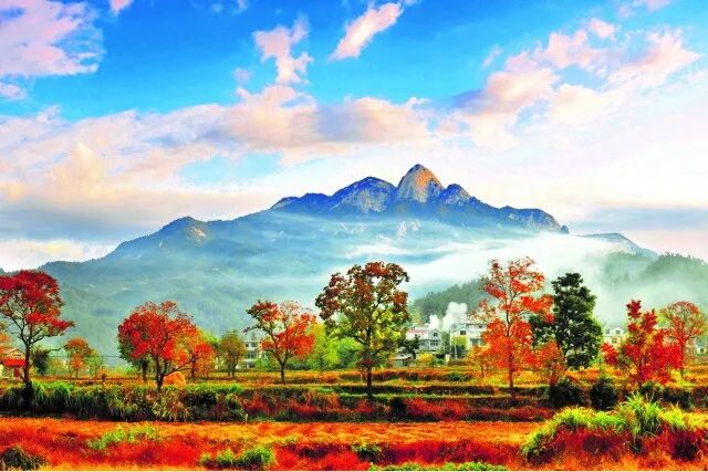 然后赶往圣人堂赏乡村红叶。走出城市,去到野外,感受这场层林尽染的视觉盛宴远眺色彩斑斓,近看红叶如火炬燃烧在田畈,群山原野呈现给我们一副壮丽无比的的画卷。走走看看,停停想想,哪里都可以是目的地,哪里都有心中的风景。晚上住在这里。住宿:普通商务酒店(为拍摄早晚最美红叶,当地没有豪华酒店,只能将就一下,比较讲究的慎重报名)。