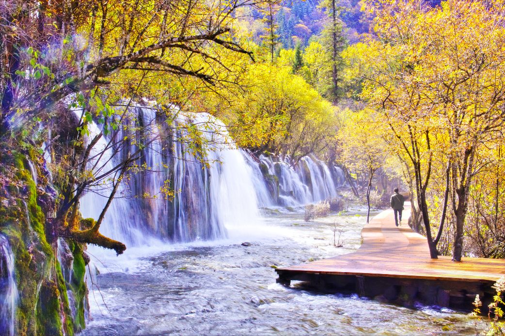 藏语中诺日朗是伟岸高大的意思,在地震发生之前,她是中国最宽的钙化瀑布,作为九寨四大瀑布之一,也是其中最有特色的。