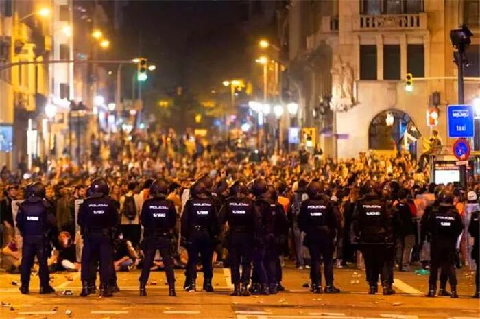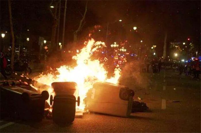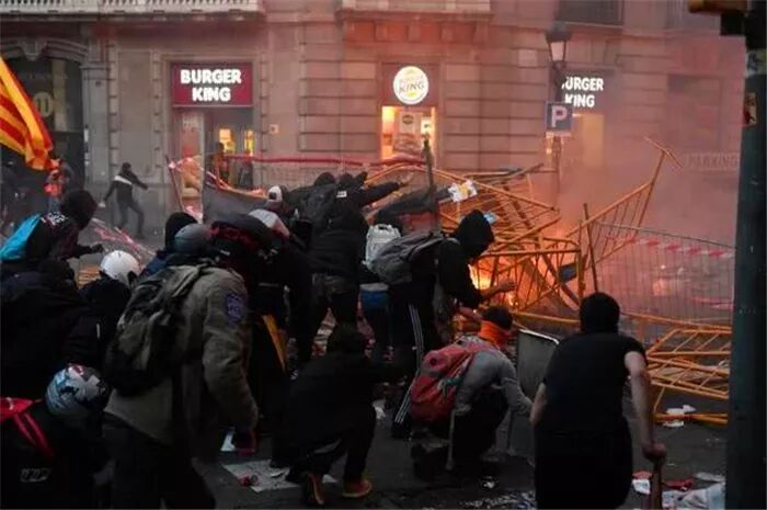 10月20日据美国媒体消息,近日西班牙法院判决洪克拉斯等多名"独立派"官员入狱,这直接点燃了“导火索”。当地时间18日全天,西班牙加泰罗尼亚自治区多次爆发了示威活动,超出几十万的群众开始拒绝工作,很多民众开始自发在街头游行组织活动。在示威的现场有很多不明的“暴徒”现身,他们肆意做出骚乱的举动,更疯狂的打砸街道商铺、堵塞街道交通、烧毁垃圾,很多巴塞罗那的街道“一片狼藉”,现场混乱不堪。