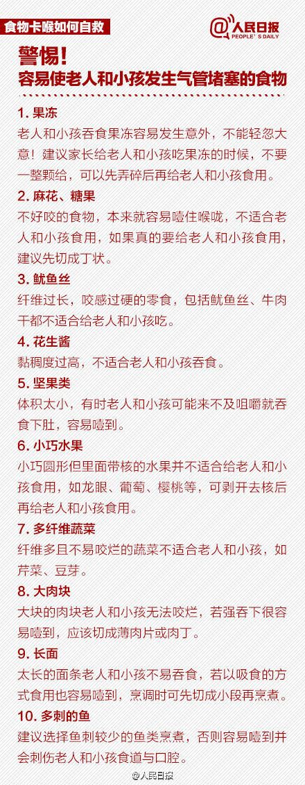 医生表示,由于儿童的喉咙、食管都比较窄,比较容易被食物噎住,因此要让孩子养成良好的饮食习惯,不要边走边吃东西。另外,不能在孩子把东西含在嘴巴时候和小孩子吵闹,很可能就会把食物吸进去了。