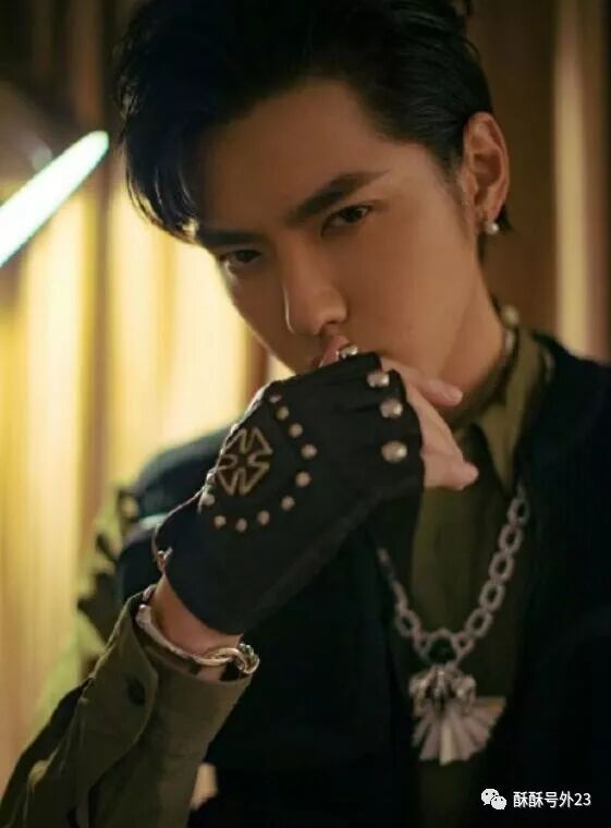 从照片中,我们可以清楚的看到,“吴亦凡”穿着工装服,一只手戴着黑色的皮手套,脖子上还挂着一个项链,时尚中还透露出一种士兵的威武。