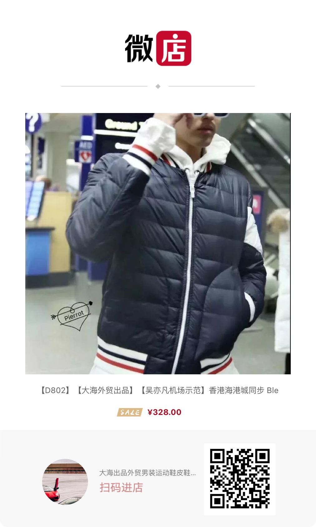 10.19日 V店推荐 吴亦凡亲身演绎 全套防尘包装 蒙口情侣款轻薄羽绒服