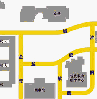 在阶梯教室和现教中心上课的区队,于阶梯教室与现教中心之间的平台列队沿紫琅路东侧向北行进,到达盐渎路与紫琅路交叉路口后向东行进,沿盐渎路南侧行进至盐渎路与淮阴路交叉路口后向北行进,沿淮阴路东侧至淮阴路与彭城路交叉路口后向西行进,沿彭城路北侧行进至食堂南侧由西向东方向上第二、第三个花坛中间,往北至食堂门前解散。