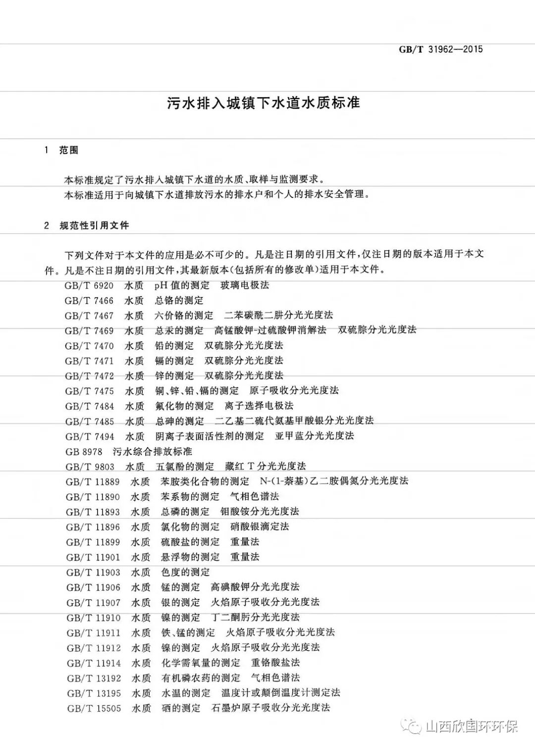 污水排入城镇下水道水质标准