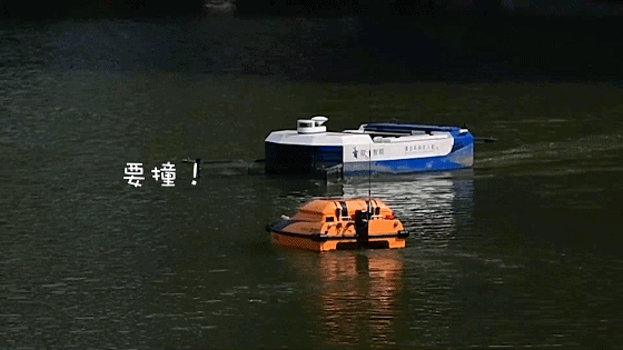 两艘5G无人船在乌镇景区的湖面上行驶。黄色的船搭载着水质传感器,负责水质检测和采样;蓝色的船装配有垃圾仓和机械臂,负责收集水上漂浮物。