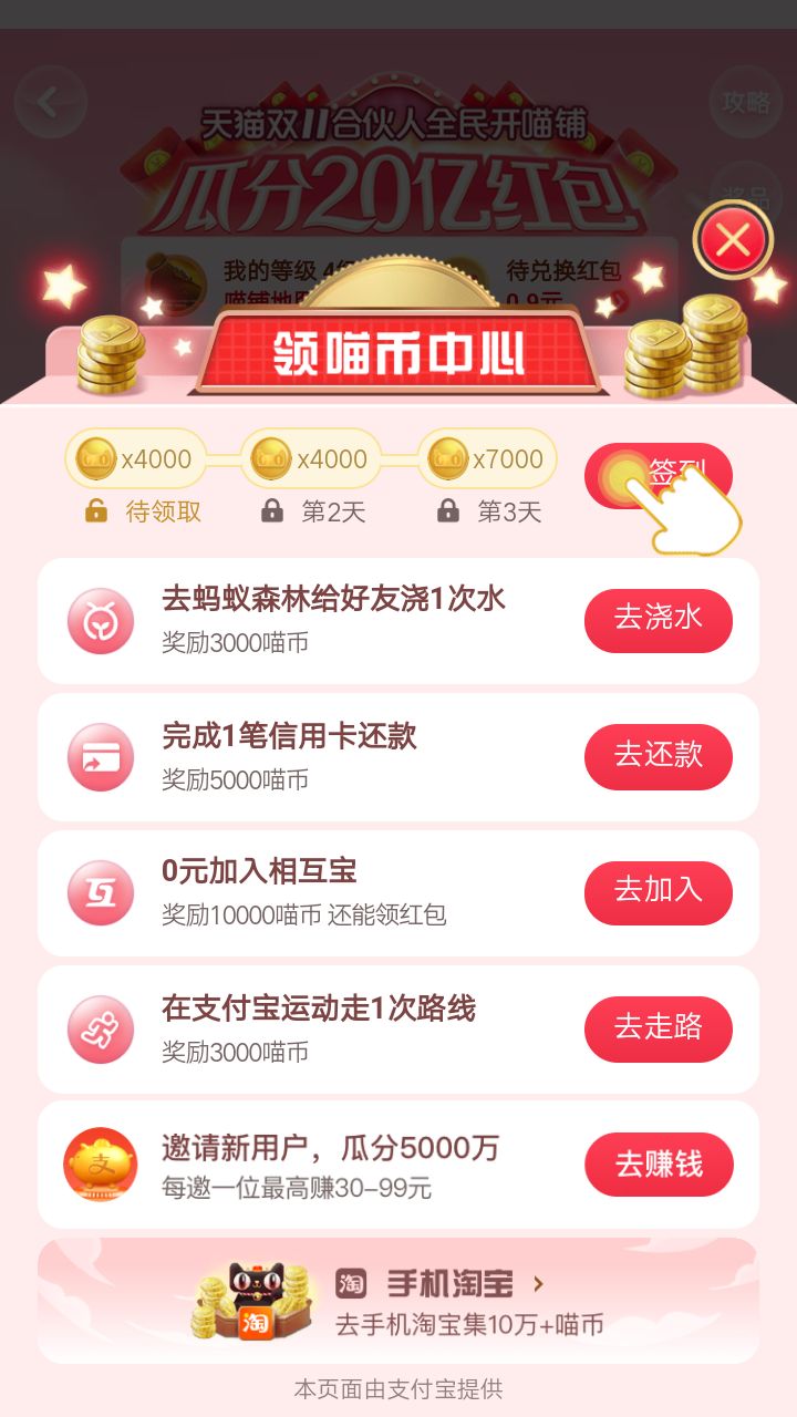 2)可通过“领喵币中心”以及喵铺自主赚喵币等方式收集喵币,但是每种方式都村在次数限制。