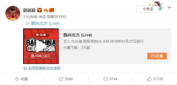 191020 吓死个颖火虫了 赵丽颖更博分享歌曲不属于无条件营业微博