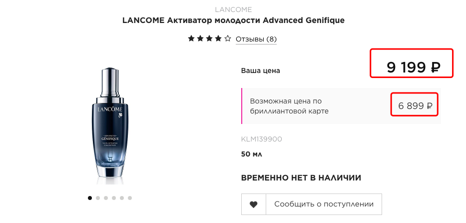 兰蔻50ml小黑瓶原价9199卢布(1022人民币左右),会员价6899卢布(人民币766左右)。