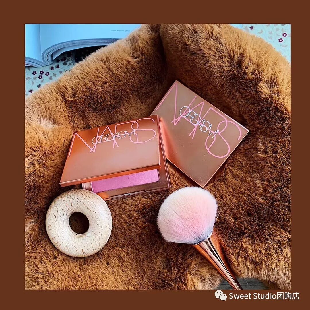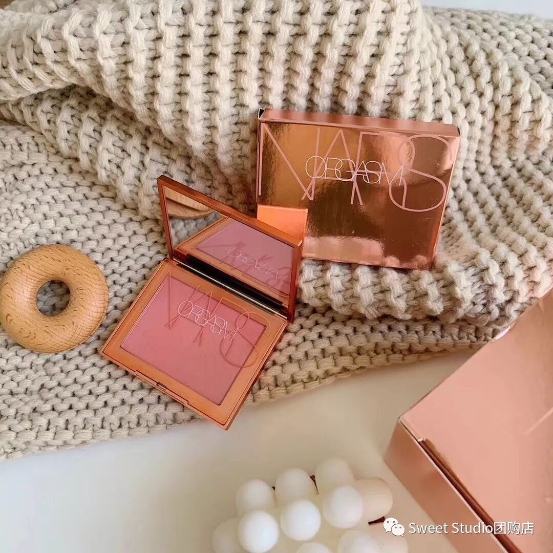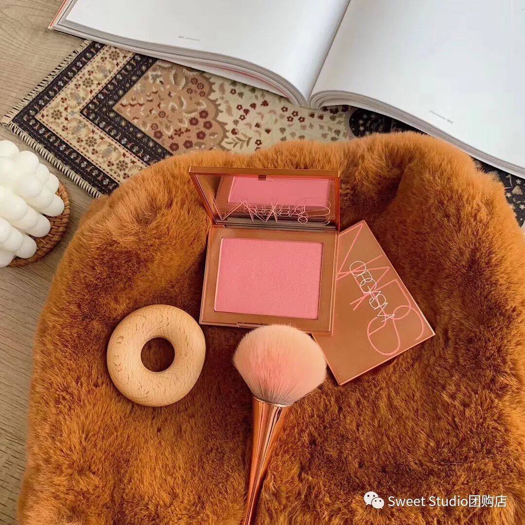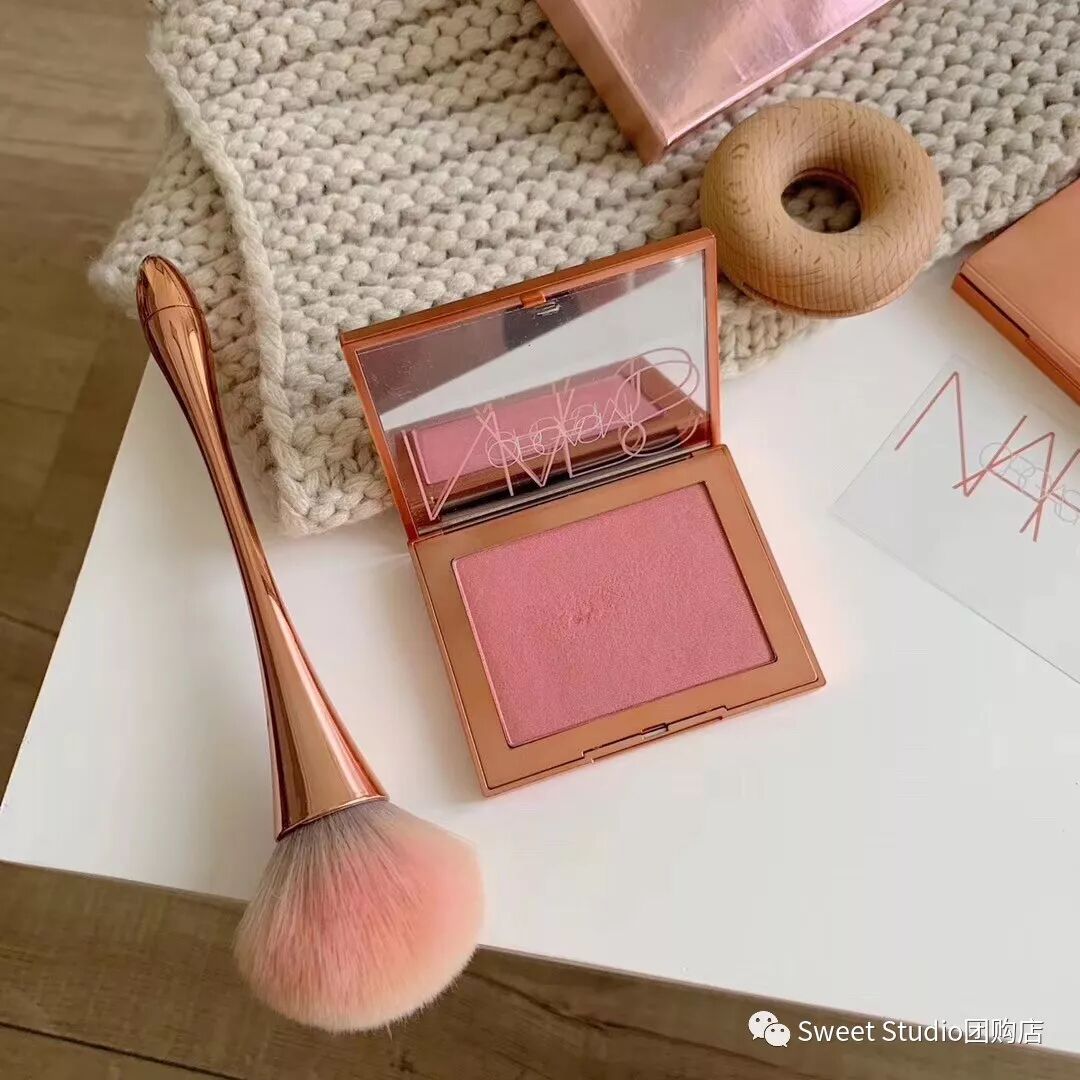 肉眼看起来是蜜桃粉 但是在阳光下就能看到金色的偏光 感觉可以算是腮红+ 玫瑰金高光的组合 两个用处