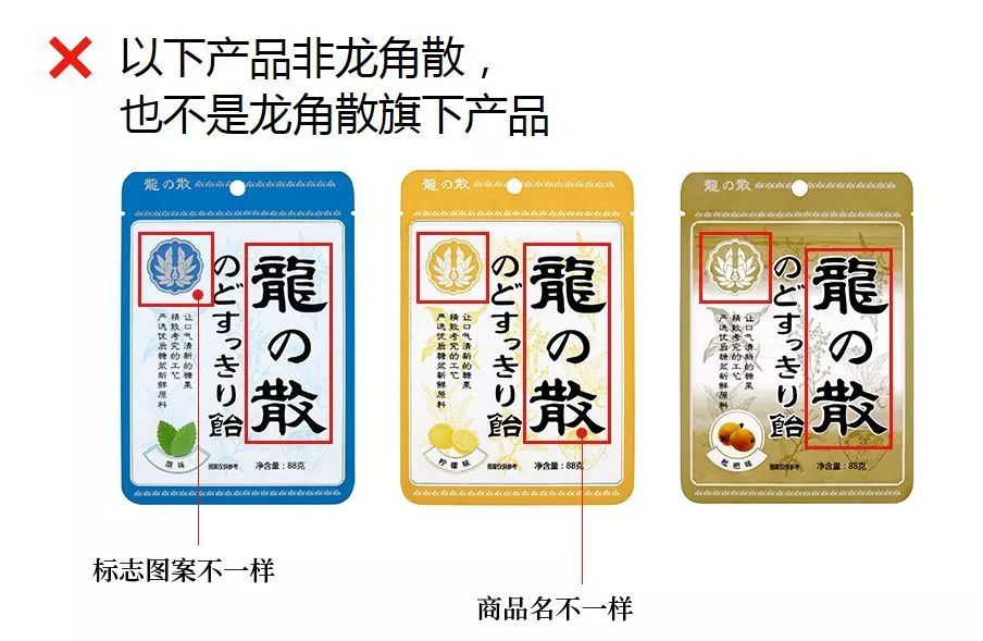 而在中国内地市场,真的有不少不法商人所制作的“山寨版”龙角散,流入市面。它的包装、用色、logo均与真货相近,消费者一不小心就会买错.....
