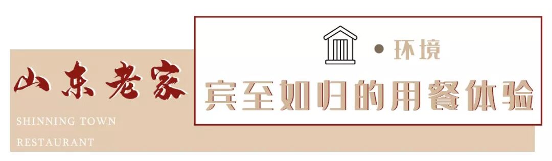 暖色调的精致装修,轻松的氛围,带给人舒适的用餐体验。如果你是在南方的山东人,这儿更是必去的寻味寻根的思乡之地了。